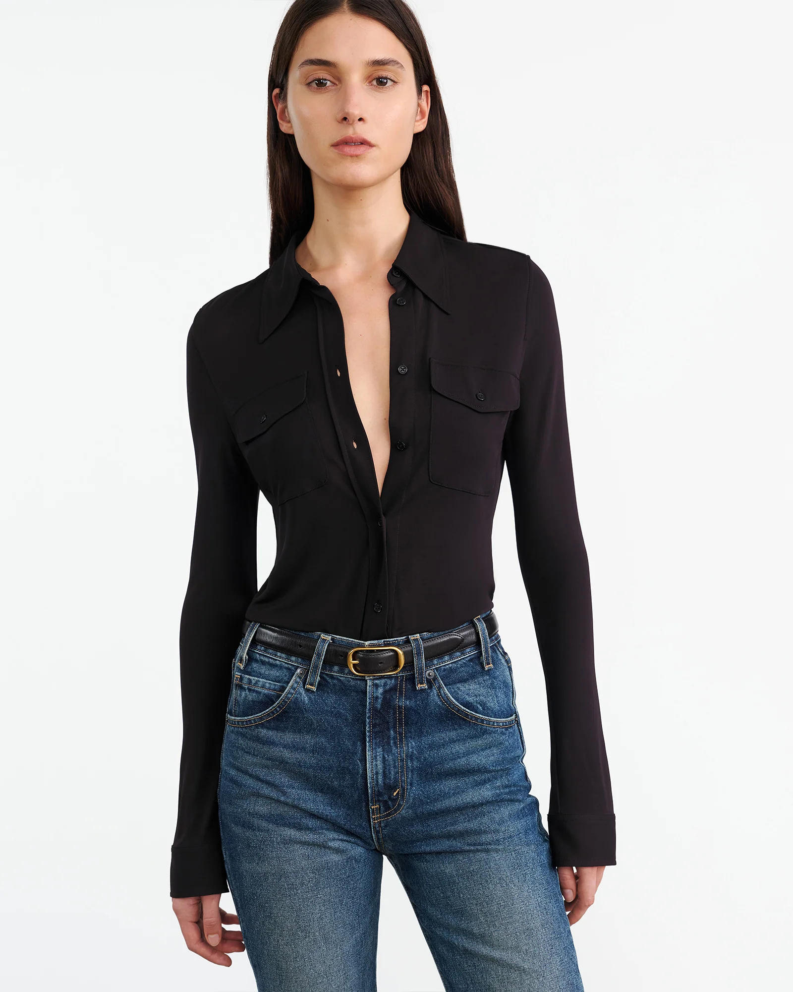 A classic silk button-down, seen through the Nili Lotan lens. Tailored in an ultra-lightweight viscose, the Aveline Shirt features a relaxed collar and two front pockets.