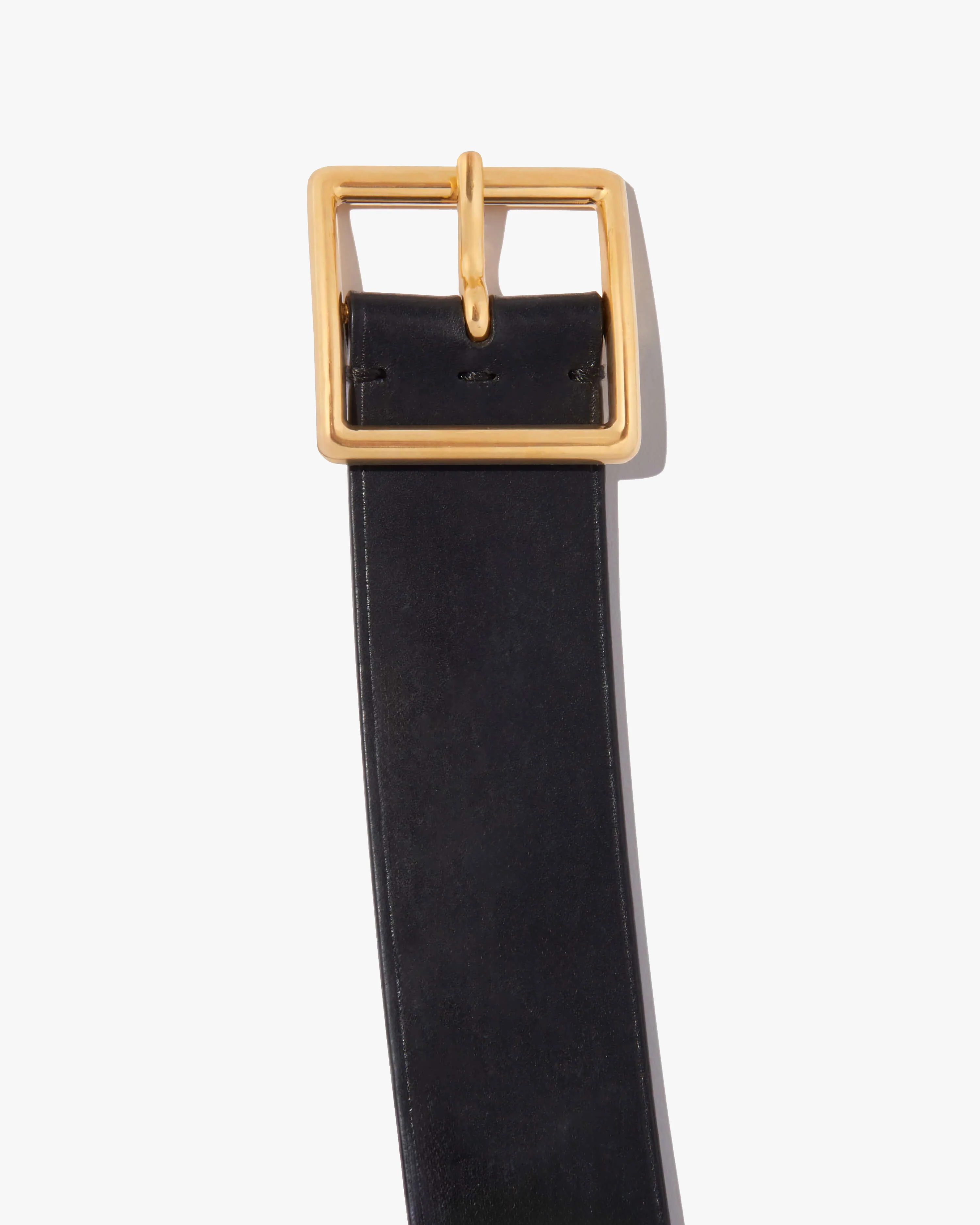 Single layer belt in Italian vachetta leather. Square buckle in antique brass finish. Contoured to fit around the natural shape of the waist.